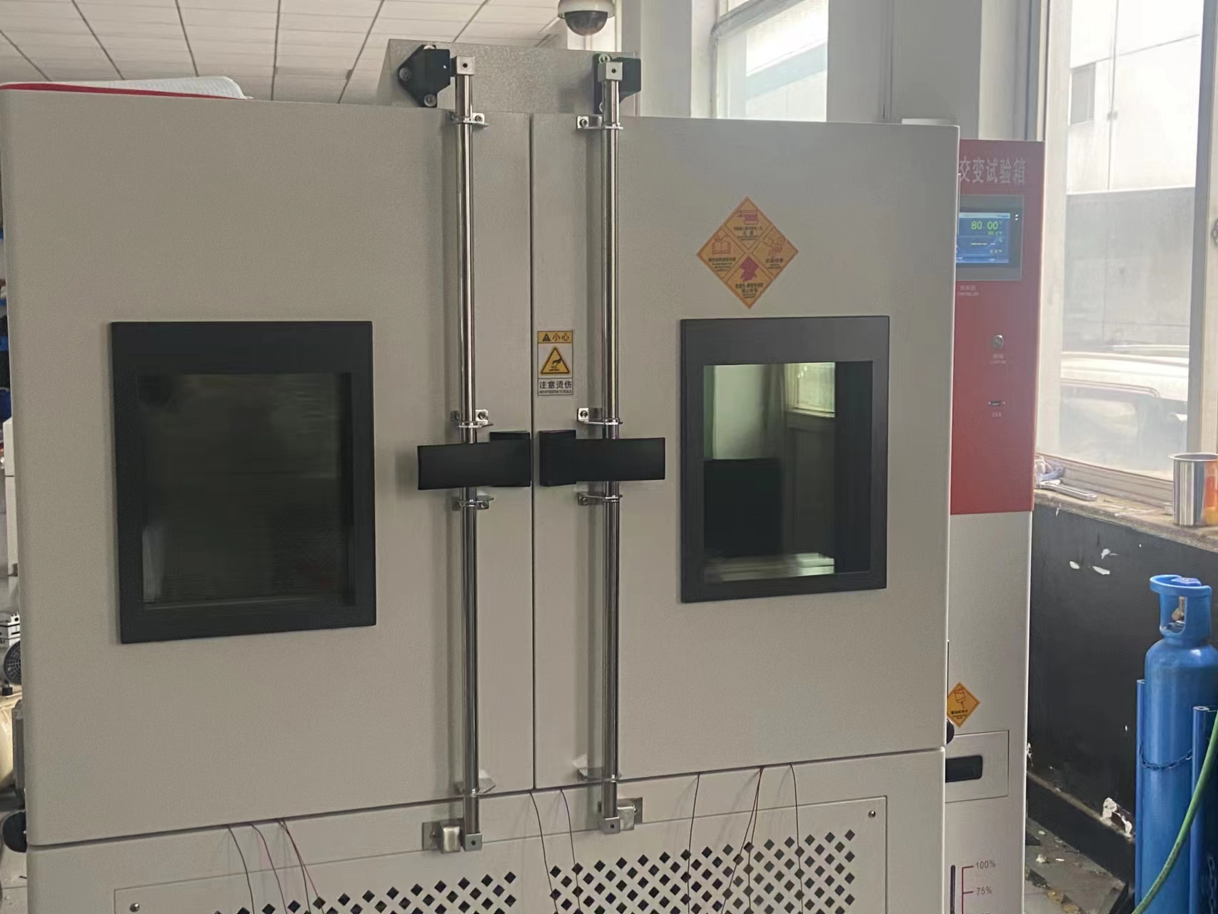 此次秀強玻璃工藝股份有限公司與我們合作,采購高低溫交變濕熱試驗箱672L,-40℃-150℃,做定制雙開門款,下為設備交貨前調試圖: