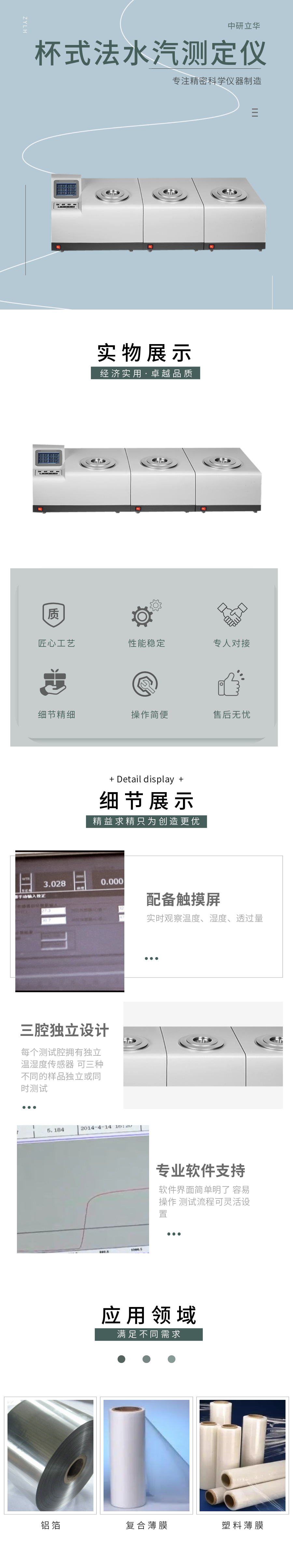 用途:測定薄膜或薄片材料的水汽透過率(量)用于塑料薄膜、復合薄膜、鋁箔、鍍鋁膜,各種片材、板材、橡膠、陶瓷,包裝容器。應用于質(zhì)檢、藥檢、科研、包裝、薄膜、食品、藥品、電子等行業(yè)