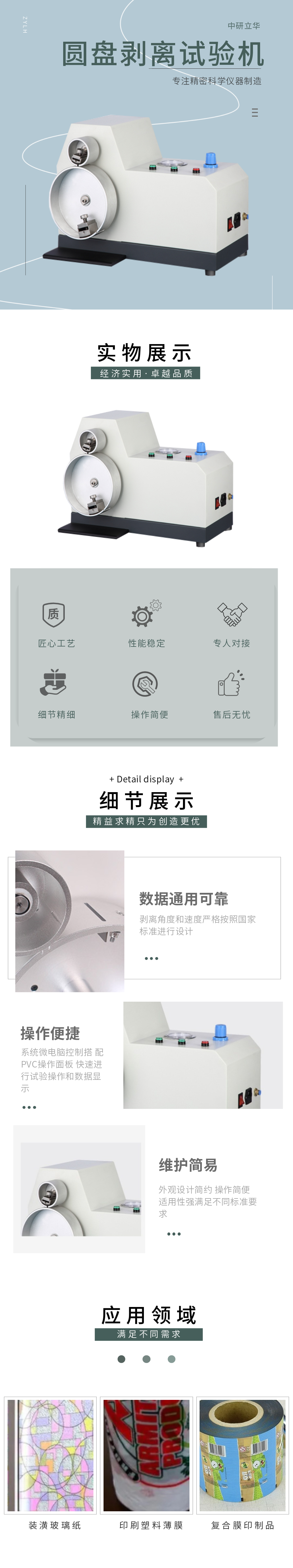 用途:用于凹版印刷工藝生產的塑料薄膜和玻璃紙裝潢印刷品(包括復合膜印刷品)進行印刷墨層結合牢度的測試試驗。也可用于真空鍍膜、表面涂布、復合等相關工藝形成的面層之附著狀態的試驗。