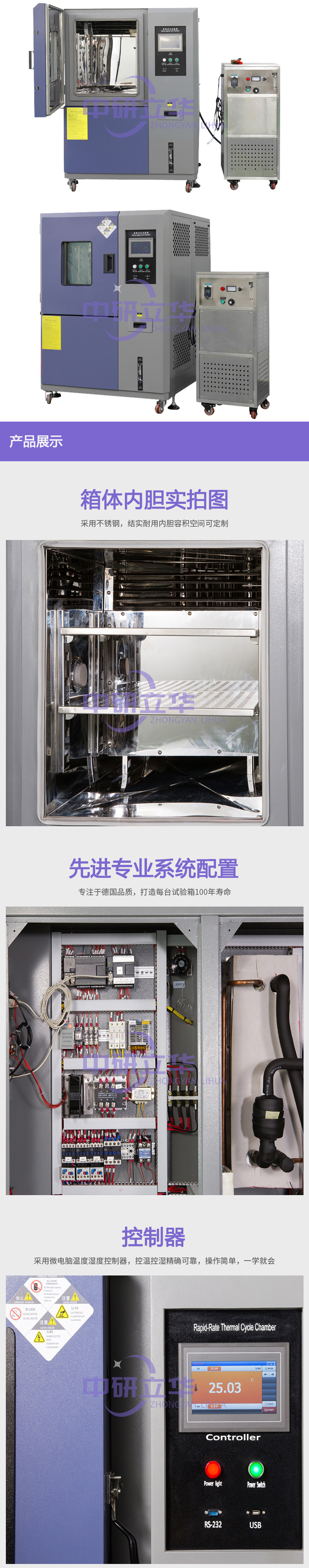 | 配件 | 真空玻璃觀察窗,通電測試孔(50mm),控制狀態指示燈,室內燈,隔層架(可自由調節2個) | |||||