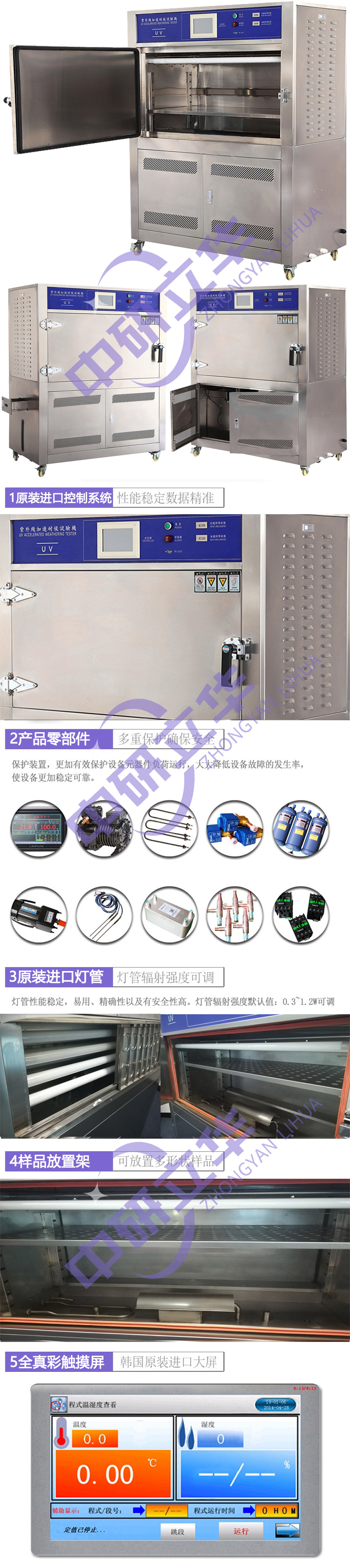 | 產(chǎn)品用途 | QUV紫外耐候老化試驗箱可以模擬由陽光、雨水和露水對材料造成的危害,UV利用熒光紫外燈模擬陽光照射的效果,利用冷凝濕氣雨水和露水。被測試材料放置于一定溫度下的光照和潮氣交替的循環(huán)程序中進行測試。UV用數(shù)天或數(shù)周的測試,即可重現(xiàn)戶外數(shù)月至數(shù)年出現(xiàn)的危害。危害類型包括:褪色、變色、失光、粉化、裂痕、渾濁、泡化、脆化、強度衰退和氧化。 UV試驗箱數(shù)據(jù)可以幫助您選擇新材料,改進現(xiàn)有材料,以及評估變化如何影響產(chǎn)品的耐久性。在材料置于戶外的變化趨勢上,UV試驗箱可以測出相關(guān)預(yù)測結(jié)果。 |
